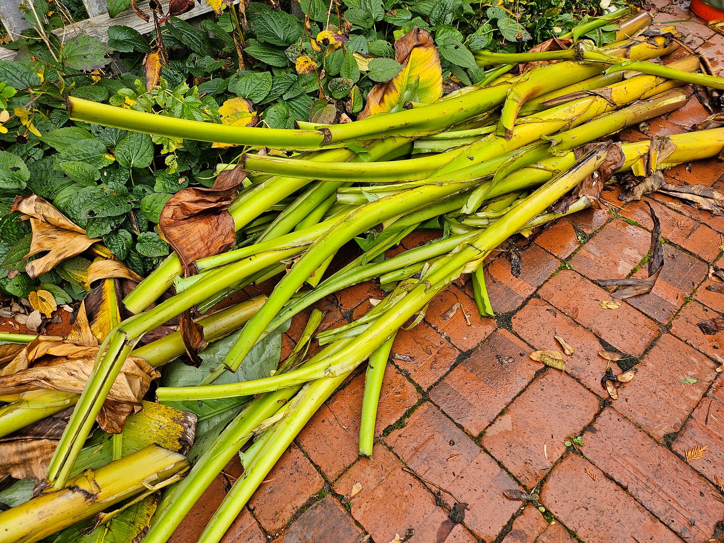Anyway, I don’t know what I’m going to do with all these naked stems; probably chop them up and add them to the yard waste bin.