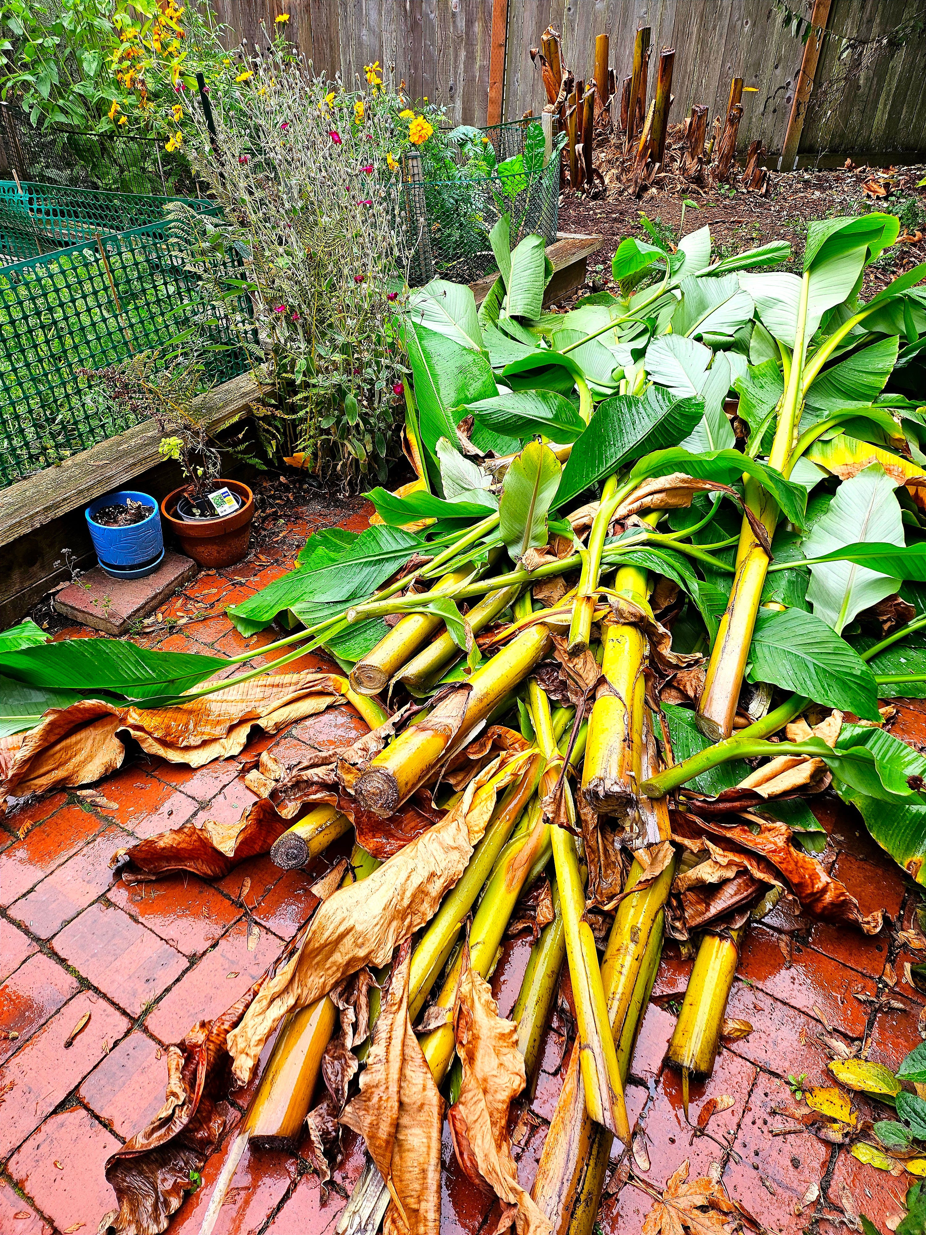 What started with the baby banana plant I bought on impulse has morphed into a yearly two day project. Managing the biomass that piles up is more work than actually cutting it down.